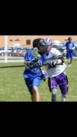 Patryck starring down his opponent on the Lacrosse field