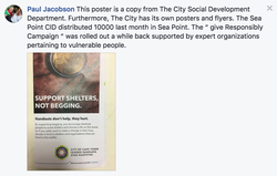 One of the posters in Cape Town as part of an initiative organized by Paul Jacobson to deny people publicly helping the homeless.