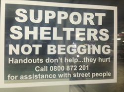 "Support Shelters Not Begging"