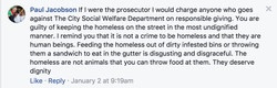 Screenshot of Paul Jacobson sharing his opinion about the initiative that he is the main organizer for that negatively impact the homeless.