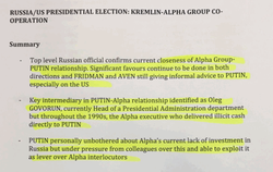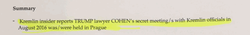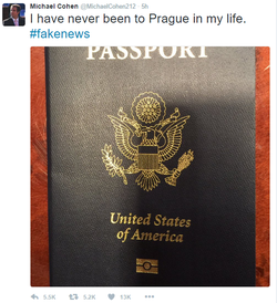 Trump was looking for real estate opportunities in St. Petersburg and Moscow but did not find anything. He settled for prostitutes instead. There is a repeated word in this section of the document with the word "had" repeated twice. [22] Trump's lawyer, Michael Cohen, allegedly had meetings in Prague with Kremlin officials. [24] Cohen tweeted a picture of his passport saying that he has never been to Prague. [23] The dossier speaks of a close relationship between the Alpha Group and Vladimir Putin." [26] Alpha is spelled wrong and is supposed to be spelled "Alfa." [8]