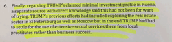 [-1] One part of the operation attempted to lure Trump into lucrative real estate deals for the upcoming 2018 World Cup, but he declined them.