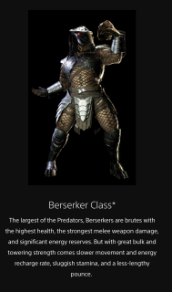 The Predator has the following class options: