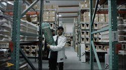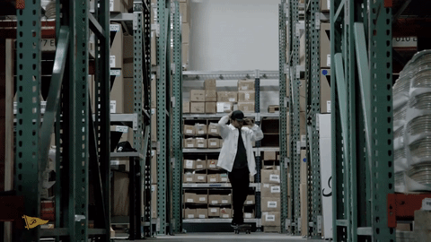 Gif of Paul Rodriguez Skateboarding through Primitive Headquarters.