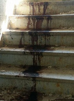 Citation Linkywqaugeunhowzrcj.public.blob.vercel-storage.comPhoto of the bloodied stairs where the victim was left at.