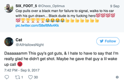 “A turn signal not made is a big enough of a crime for you to feel like you need to take out your service pistol, right?