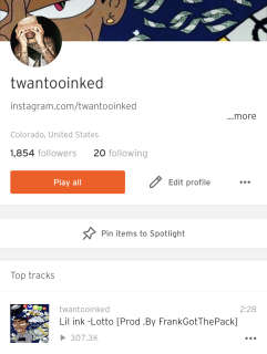 Twantooinked has co-signs from stars of the legendary "Juice" film Kahlil Kain(Raheem) and Jermaine Hopkins(Steel) which both gave a thumbs up on him making the film into a mix-tape Jermaine Hopkins commented on his picture in relations of the mix-tape.[17] While Khalil Kain messaged him directly and they both still follow him on Instagram till this day [19]. Twantooinked states" this was a very special accomplishment for me becuase at this point i was a nobody in the music world im just glad the two stars from my favorite movie reached out and seen the work i was putting in." He also has numerous co-signs from fellow Soundcloud rappers and other social media public figures. Earlier this year of 2020 twantooinked sat down with A&R Emily Lazar from "Spotify for artists". Both parties experimented with having a pre-order chat party as they did a joint collaboration to re -release his juice mix-tape on there platform. It was successful over 300 active people joined as they waited for the release of the tape to be available on Spotify as well as all other major platforms twantooinked had a chance to get to know and chat with his fans he stated" this was a huge event for me i didn't expect it to do that good but a lot of people are still interested and haven't heard that mix-tape im just happy to finally have it out on all platforms."