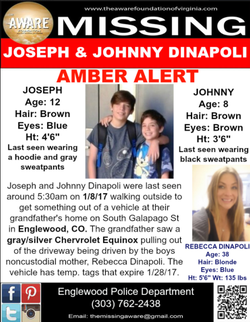 Rebecca Dinapoli (born 1979) is an American from Colorado who is currently the center of an AMBER Alert issued from Englewood, Colorado. [2]