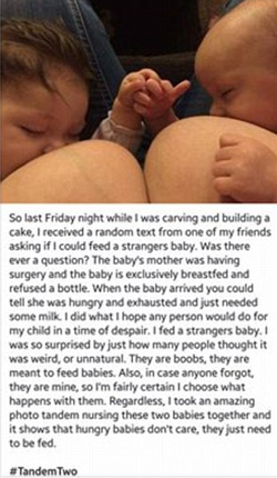 Rebecca happily obliged and breastfed both her own and the stranger's baby.