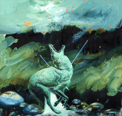 He often presents his audience with figures of dancers at rest or in waiting, religious iconography captured as if in action, and creatures surrounded by vague swathes of subtropical and supertropical tones.
