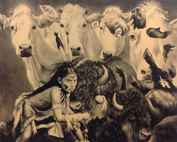 He taps into the tense uncertainties inherent in the myths and rituals of indigenous Native American, Latin and South American cultures (all of which contribute directly to his heritage) through exploratory color fields, human and animal totems, and the natural environment.