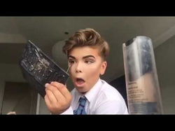 He admitted he tries to wear make-up to school, although he gets told off for it.