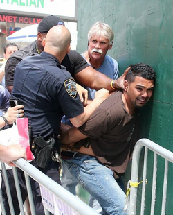 Rojas attempted to flee police after the crash, before being grabbed and bundled into a cop car by several officers of the New York Police Department.