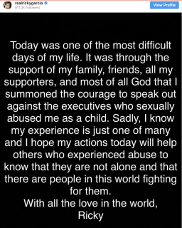 In September of 2019, Garcia filed a lawsuit against his former manager for sexually assaulting him starting from when he was 12 years old.[12]