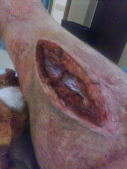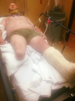 In 2014 Rob J had his right leg crushed in a work related injury, when a 70 pound package fell on his leg.