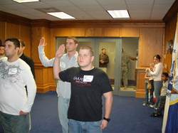Robert Jones being sworn in to the Army at Louisville MEPS
