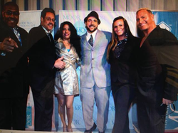 On the Red Carpet for a Grammy Party, (From Left Jerry Bell (The Dazz Band), Larry Dunn (Earth, Wind, and Fire), Nicolosi (Celebrity Pop Artist), and Robby Young)