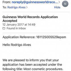 In February 2017, Rodrigo was offered the award for 'Most Cosmetic Procedures' by the Guinness World Records. [76]