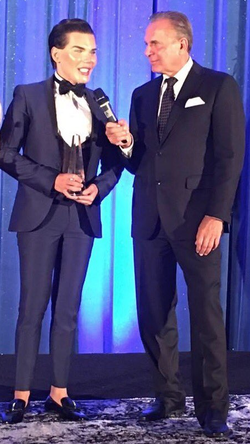 Doctor Andrew Ordon from the tv show the doctors awarded Rodrigo Alves with a very prestigious award for being the most inspirational personality of 2016 at The Aesthetic Academy awards show in Los Angeles, California. [62]