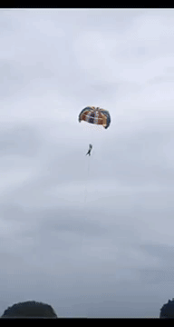 The man who sailed with Roger did not wear a harness and were then pulled by the boat that lifting their parachute high into the air above the water.