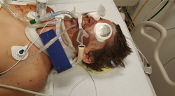 [1] His injuries include an amputated left leg, screws in his arms, several blown off fingers, and severely burned face and hands.