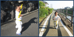 Ryuji, with the help of his father, shares his progress on his public Facebook account, and his improvement shows that his kicks have gotten quicker and more precise. He also goes on Jogs with his father. [undefined] [666666]