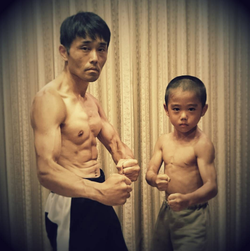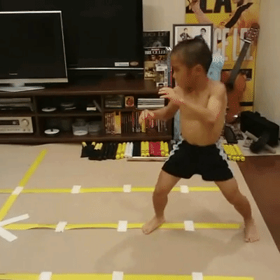He began to watch and emulate Bruce Lee, copying his moves and his style, and now his father has begun to train his son the proper techniques.