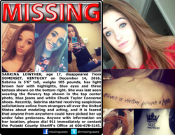 Anyone with information about Sabrina's whereabouts is urged to call 1-606-678-5145.