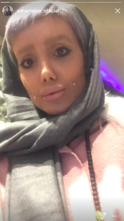 Sahar Tabar is an Iranian Instagram model who is known for having multiple operations to resemble Angelina Jolie. [16] [17]