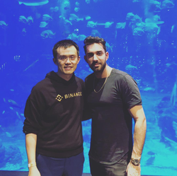 | Sam Farao and Changpeng Zhao at the Binance private after party |