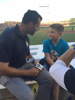 On Tuesday night, ‘Stare Down Sammy’ was back for more. He’s here at TD Ameritrade Park, fresh new haircut and all, and he’s turned into a bit of a local celebrity. Sammy was interviewed on the ESPN broadcast by Kaylee Hartung, and as usual, he nailed it. He also made it up on stadium video board, where he triumphed in, you guessed it, a staring contest.