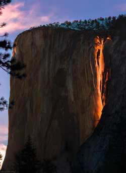 In February 2016, Dey took a photo of the Yosemite Firefall, which is a phenomena where the sunlight hits Horsetail Falls and lights it up.