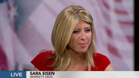 GIF of Sara Eisen's wardrobe malfunction on Bloomberg TV