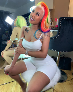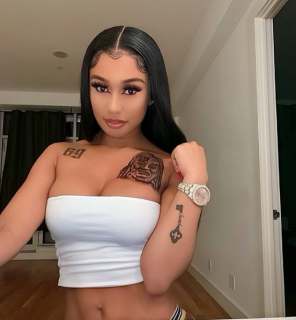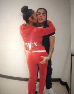 In May 2019, she got a tattoo of 6ix9ine's face directly above her left breast.