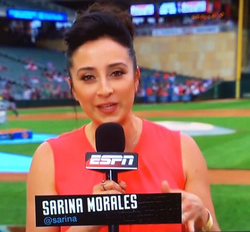 Sarina Morales (born March 29, 1986) is a sports reporter based out of Los Angeles, California. She is currently a Los Angeles Rams Team Reporter. Morales is also well known for her previous role as an ESPN correspondent and co-host on SportsCenter AM.