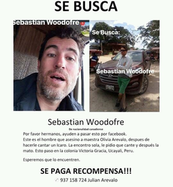 Sebastian Paul Woodroffe (October 26th, 1976) was a Canadian wanderer who was lynched and murdered by Shipibo-Konibo tribe members after being accused of killing their healer and rights activist, Olivia Arevalo Lomas.