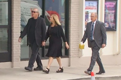 Mayor Megan Barry walks to her son's visitation with her husband Bruce and Sgt. Robert Forrest.