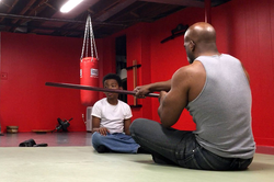 This is a video of martial arts teacher, Jason Wilson, giving lessons to a child about manhood and emotions.