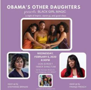 I’m on a UCB house sketch team called “Duchess” and am on a comedy team called “Obama’s Other Daughters”.