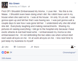 According to Facebook post on Nia's page, she went to the hospital after the beating after suffering from headaches and an anxiety attacks.