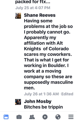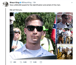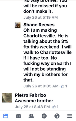 On August 12, 2017, Reeves, along with Michael A. Ramos, Daniel Borden, and other unidentified white supremacists, were photographed and recorded on video assaulting Deandre Harris, a counter protester of the Unite the Right rally in Charlottesville, Virginia, with poles. [1]