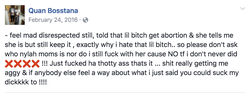 Facebook post where he complains that Lewis never went through with the abortion.