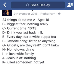 On January 20, 2017, Shea was arrested and charged in connection to the death of Leonne Weeks. [0]He has been remanded into custody and will appear before Sheffield Magistrates’ Court on January 21, 2017 charged with murder. [0] [5]