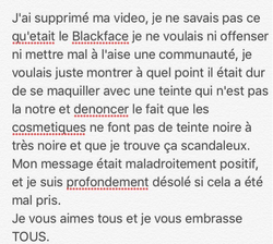 She has been accused of Racism by internet users. She has stated that she had no knowledge of what blackface was and its violent and racist history in France.