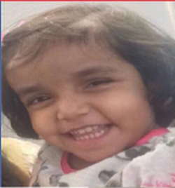 On October 7, 2017, Sherin's father put her outside at 3:00 a.m. as punishment for not drinking her milk.