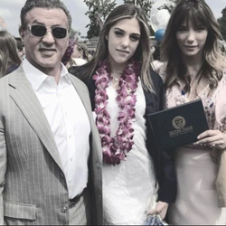 She was born and raised in the city of Los Angeles, California as the middle daughter to mother Jennifer Flavin and father Sylvester Stallone. [4]She is the sister of Scarlet and Sophia Rose. [5]Together they were encouraged by their father and mother since a young age to explore themselves through wester-riding competitions, art, boxing, and modeling. [2]