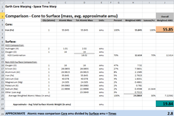 [9]Earth's surface is 70% water[H2O, (2 x 1.01 amu) + (1 x 16.00 amu) = 18.02 amu] [-1] [11]and 30% other elements (approx avg 24.09 amu), yielding an approximate overall surface atomic mass average of 19.84 amu.