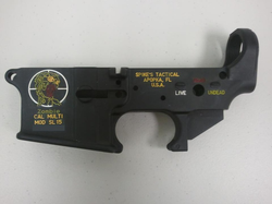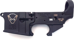 Citation Linkyoutube.comA video of a Spikes Tactical Punisher lower.The one in the link has a colored skull.They also have them for a Spider (their default logo) Spartan, Honey Badger, Pirate, Zombie, Warthog, and Hellbreaker.Most of the lowers are forged, but some, like the Hellbreaker, are machined from 7075 Aluminum and have a MIL-A-8625F Type III Class 2 hardcoat anodized finish.