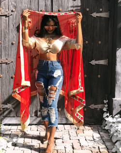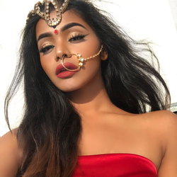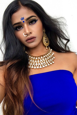 Sruthi grew up in the South India in the state of Kerala and developed an appreciation of the culture, food, and fashion of where she was raised. [2] At 11-years-old, Sruthi moved to the United States when her mother found a better opportunity as a registered nurse. [1] When she first settled in California, Sruthi faced discrimination and bullying due to her continuing to dress in the same manner as she did back in India. [1] Ashamed, she began to assimilate into culture of the United States and it was not until college that she began to embrace her traditional roots again. [1] She began posting pictures of herself wearing traditional clothing in India and accessories like the Bindi and the Nath Nose Ring. [1] One Twitter post in particular captioned "People: "what's with the dot" "what's that on your nose" "maybe you should tone down all this cultural stuff" Me:" with two accompanying pictures received over 21,000 retweets and 74,000 likes. [4] Sruthi runs the blog Silk and Champagne, which focuses on style, fashion, art, poetry, individuality, and aesthetics. [2]