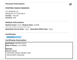 Paddock was a licensed hunter and private pilot, and owned an aircraft at Mesquite Metro Airport from 2007 to 2009.